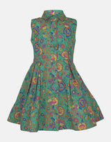 The Darcy bright floral print is unique to Little Lord & Lady and to this season, creating a limited edition shirt dress. A neat fitted sleeveless top with a shirt collar give this dress a certain British style. Flowing into an inverted box pleat skirt, there is plenty of gather for twirlability and fun. Fully lined for comfort, the dress is finished with a full button front for easy changing. The bright floral print is a pink, yellow or blue flower in keeping with the story colourway on a stunning green cotton A beautiful dress, simple and unique.