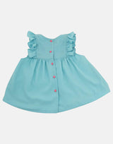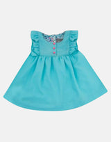 This playful turquoise, frill sleeve empire line blouse is lined with our unique Haworth print. With pink buttons to the bodice, frills to shoulder and a full button back, this easy fitting top looks spectacular with our Haworth story.