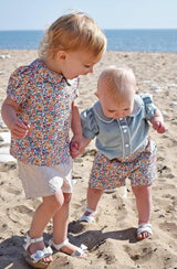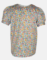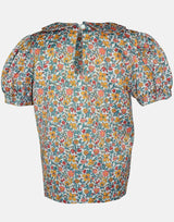 A deep yet soft colour way for this satin feel blouse. A sweet Peter Pan colour atop a neat body, finished with cuffed, puff sleeves. The blouse is fully lined for comfort with a full button back for easy changing. The Betsy ditsy print is a Little Lord & Lady design. Unique to this season, it combines a hazy summer of sage, apricot, sunflower and terracotta in a ditsy floral - bringing the colours of the story together.
