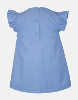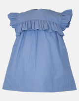 The Lucinda blue pin stripe blouse is a simple empire line for elegance. A round neck for this blouse with a frill sleeve and frill detail to the front. The crisp cotton fabric is fully lined for comfort, the blouse is finished with a part button back for easy changing.