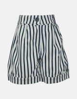 The eye catching navy stripe turn up shorts are a versatile choice for this story. Matching eveything, the flat waistband has waist adjustors for comfort and fit. With slant pocket for those Little Lady essentials, the silhouette is cute and stylish. Fully lined for comfort, they have button and zip to the waist for easy changing.