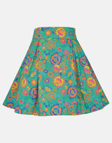 The Darcy bright floral print is unique to Little Lord & Lady and to this season, creating a limited edition skirt The waistband falls into an inverted box pleat skirt for twirlability and fun. Fully lined for comfort, the skirt is finished with a zip for easy changing. The bright floral print is a pink, yellow or blue flower in keeping with the story colourway on a stunning green cotton A beautiful skirt simple and unique.