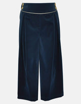 A deep forest green for these simple baby cord culottes. Wide leg but trim at the waist with a deep waistband, piped in gold to match the trim for this collection and finished with gold buttons to the hips. The waist has elasticated adjustors for comfort and fit, creating a sleek silhouette.