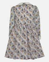 The Primrose print is unique to this season, it combines a caramel and navy primroses on a cream background, resembling the flower borders of Primrose Hill where the story is set. This dress comes with a matching bow headband in the Primrose print, edged with navy piping.