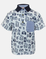A stunning white polo with our unique navy camera print. Trimmed with navy collar and cuffs and a chambray neck placket and breast pocket, this polo is perfect for a smart casual style.