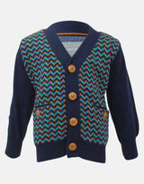 Look amazing in a cashmere blend cardigan. With a smart herringbone design to the front, this navy, orange and jade cardigan has pockets to the front and wood style buttons for that authentic look.