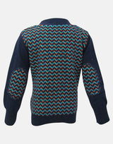 - Navy, orange and jade herringbone design to front