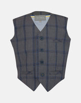 A smart mid grey with a blue check for this tailored waistcoat. Lined and trimmed in complementary colours, there are pockets to front for special Little Lord essentials.