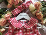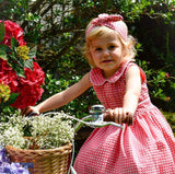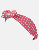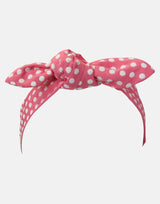 The striking fuchsia jacquard with a white spot for this knotted headband with an elasticated back. Part of our Cotswolds collection - team up with other separates from this range for a Little Lady look.