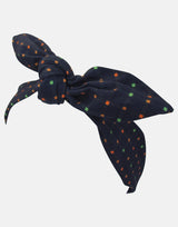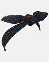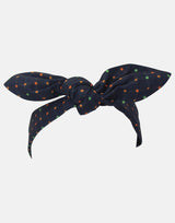 A sweet knotted headband in our striking Willow fabric. The Willow fabric is navy with a dobby spot in mustard, orange and green.