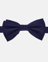 A charming bowtie in navy 100% cotton with a burgundy spot. Combine with our navy spot shirts for an ultra dapper style.