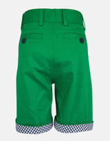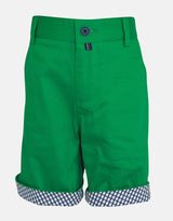 Fresh green for these striking shorts with trim detail for that extra style. Trimmed in a navy and white geometric print for contrast, these shorts have pockets to front and an adjustable waist to ensure a trim fit. Remember all our shorts have 3% elastane for that bit of stretch to ensure a good fit, but also to prevent tears and mis-shape from the rough and tumble of boys play.
