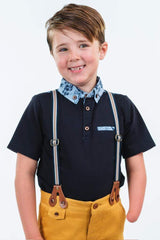 A smart, navy polo with our unique Henry floral print to trim at pocket, collar and cuffs. With a chest pocket and contrast brown buttons this polo shirt is perfect for dressing up or down.