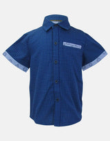 A smart short sleeved chambray shirt using a teal woven spot textured fabric for added comfort and individuality. Trimmed with our unique pocket watch print to collar, cuff, button placket and breast pocket, this stunning shirt is unique enough for days out and cool enough for every day.
