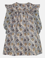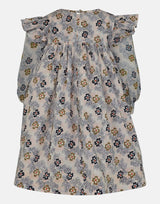 An empire line for this sweet dress in our Primrose print. A neat top is edged with a small frill which extends over the shoulder. The long sleeves in sheer Primrose print fabric are full and finished with a simple buttoned cuff. Lined to the body and gathered skirt, this stunning dress is fastened to the back with a keyhole and button.