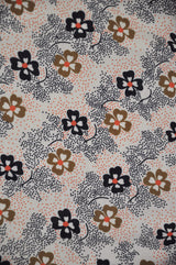 The Primrose print is unique to this season, it combines a caramel and navy primroses on a cream background, resembling the flower borders of Primrose Hill where the story is set.