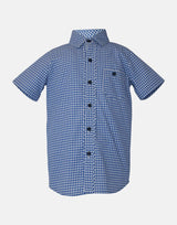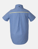 This blue and white check fabric has the most amazing texture for this cotton short sleeve shirt. With contrast buttons and a chest pocket, this versatile shirt is the super option for those everyday occasions.