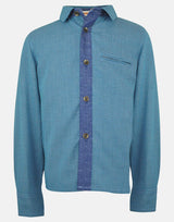 A striking teal and navy woven long sleeve shirt trimmed with our Dudley fabric to collar, placket and cuff. Complete with a chest pocket for those extra important Little Lord essentials.