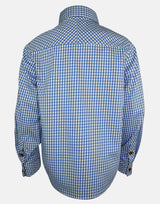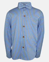 A sky blue check for this traditional long sleeve shirt and matching bow tie. With contrast buttons in two tone brown and a chest pocket perfect for Little Lord essentials, this shirt is a smart option for those everyday occasions.