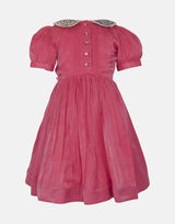 A classic silhouette in our pink polka dot cotton for this delightful dress. A neat fitted body with short puff sleeves and piping and buttons to the front. The ditsy print Peter Pan collar give the dress traditional elegance. Flowing from a pleated waistband into a gathered skirt, the lashings of net underskirts offer twirlability and fun. Fully lined for comfort, the dress is finished with a hidden zip for easy changing. The most gorgeous of dresses.