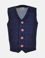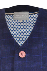 Navy plaid check in cobalt blue for this tailored waistcoat lined & trimmed with our Michael fabric. There are pockets to front and it is fastened with contrast buttons in a single breasted style for a snug fit.