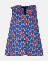 The Alya hot air balloon print is unique to Little Lord & Lady and to this season, creating a limited edition blouse in blue and orange. The sleeveless blouse has a frill collar and cute A-Line silhouette. Fully lined for comfort, the blouse has full button front for easy changing. The orange, blue and striped balloons sit on a pale blue background creating a fun eye catching print in keeping with the story colourway.
